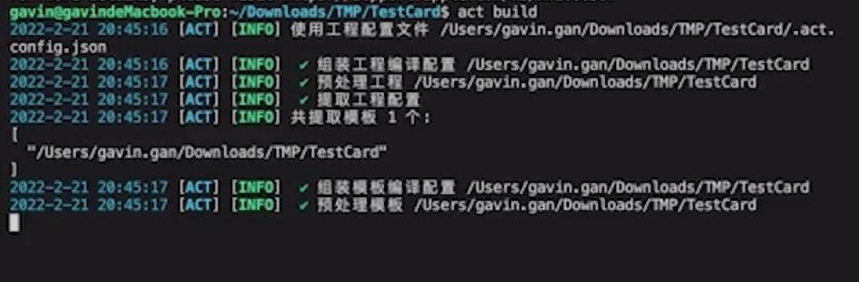使用“act build ”命令编译本地模板。编译完成后,左侧新增了 dist 目录,它是模板的编译产物。