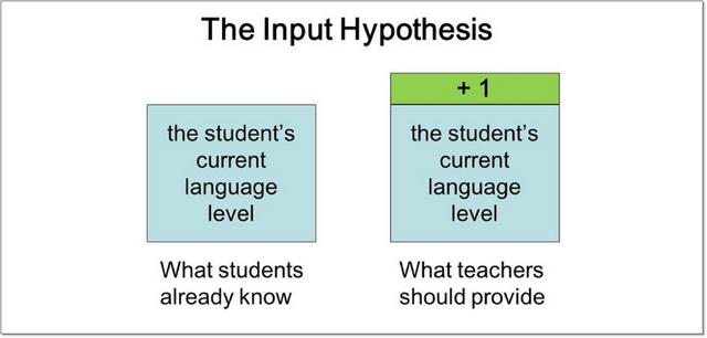 这一套说法便是克拉申提出的“i+1”可理解性输入假说,大量、可理解和“i+1”都是关键词。