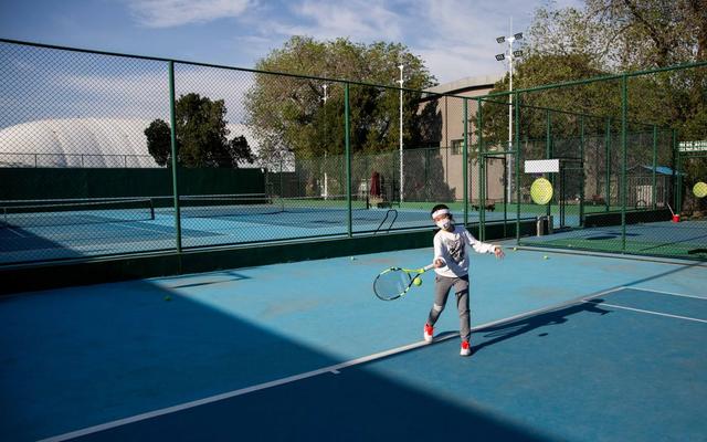 4月22日下午4时许,记者在天坛体育活动中心网球场看到,3块场地里仅有一位小姑娘在进行网球练习。她告诉记者,自己今年11岁,从7岁开始练球。疫情至今,这是她第4次前来训练。