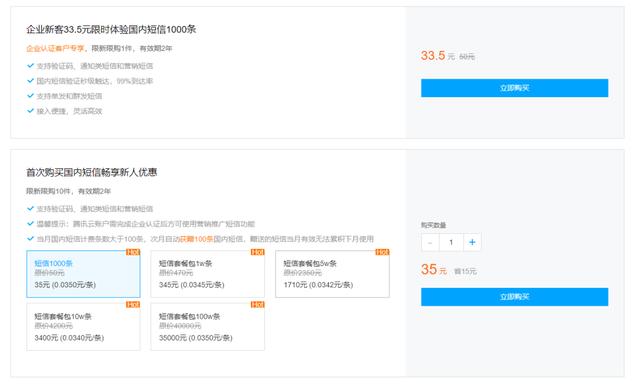 目前,支持个人短信服务的厂商有阿里云、腾讯云,其他厂商都是需要认证为企业用户才能使用短信服务平台。短信供应商根据发送量进行收费,发送越多单价越便宜。