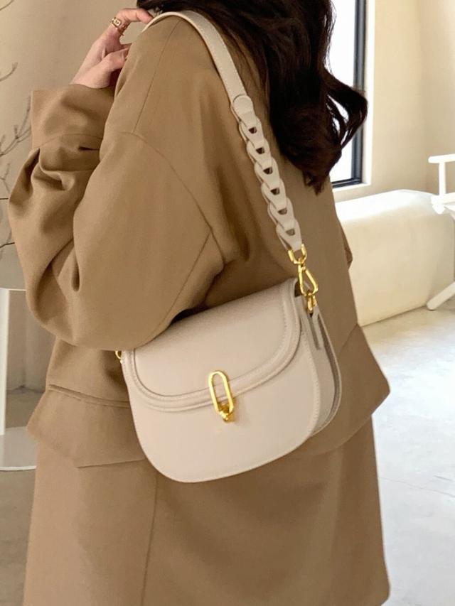 马鞍包的空间也比较充裕,正常大小的足够日常实用了,白色的马鞍包简约干净、给人一种十分清爽利落的感觉,而且也很百搭实用,加上一些金属的扣件装饰,优雅又气质。