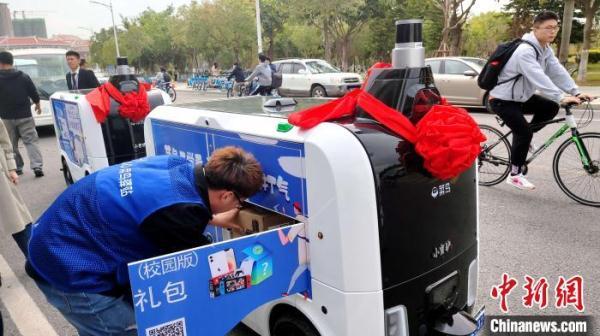 他说,3台菜鸟无人车进入厦门大学后,将快递送到宿舍楼下,成功解决了厦大学生远距离取件的难题。