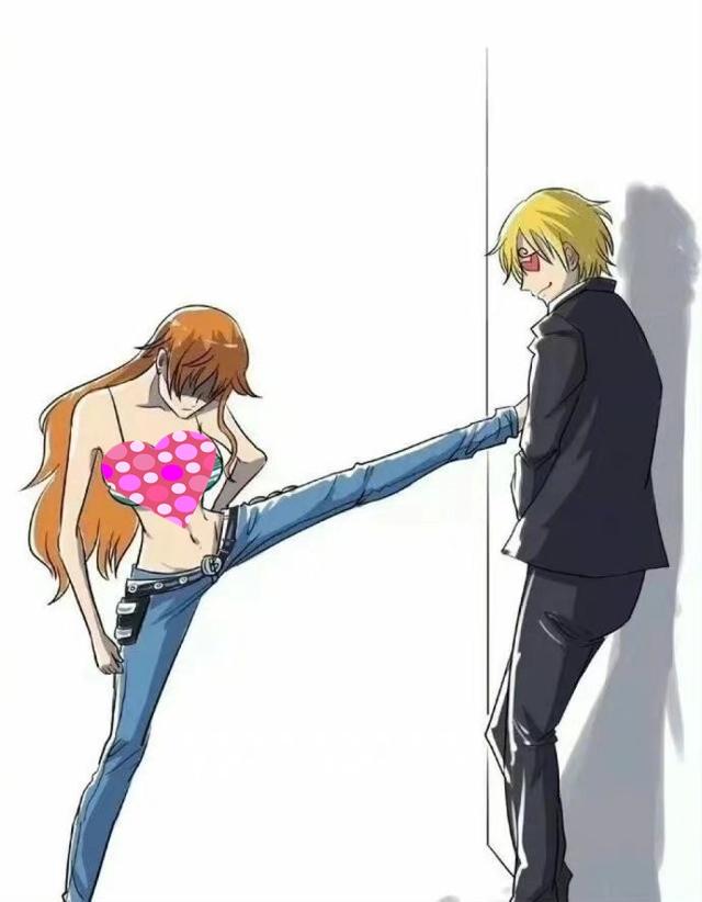 娜美向大家演示的就是“壁咚”的进阶版“腿咚”,这在曾经的网络短视频大潮中曾经红极一时,女生进行高抬腿劈叉的形式,用腿将男生逼至墙角,让男生娇羞不已的新姿势,只不过娜美明显功底不够深厚,这腿抬的明显不够高!好在对面是山治,就算娜美站着不动,山治估计也会心动不已的!