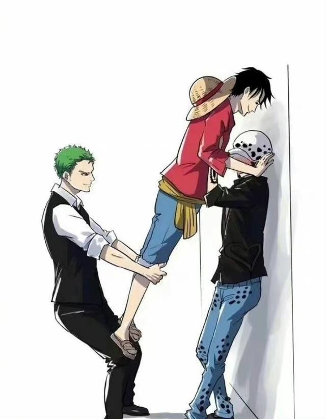 接下来的“咚”可就不像“壁咚”和“腿咚”那么常见了,这完全是非常邪道的三人壁咚新姿势,路飞站在蹲着马步的索隆腿上,双手撑在罗的两侧,这个难度系数还真不是一般人可以完成的,由于这个高难度动作既要用到腰,还要用的蹲马步,那么我们就称之为“腰马咚”吧!