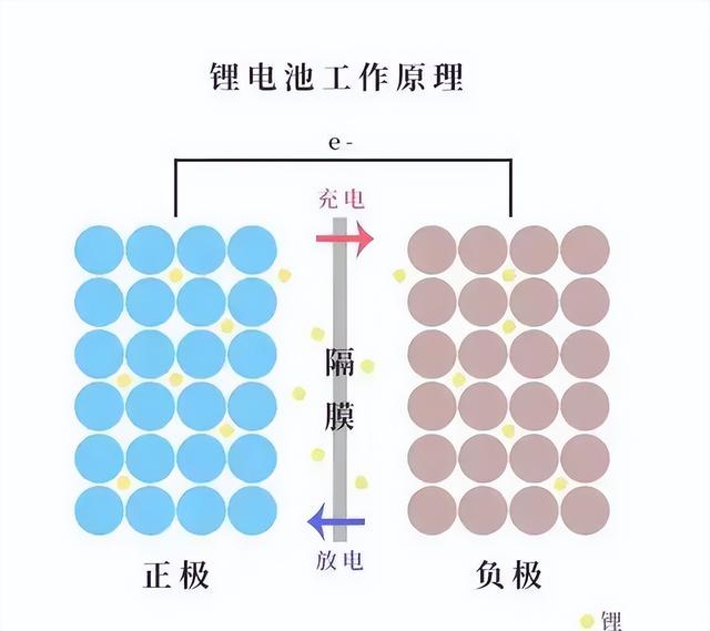 以锂离子电池为例,我们都知道,电池的工作原理是充放电发生的时候,锂离子在电池的正极和负极间不断地来回跑动,电子沿着导线在外部跟着来回移动,从而实现电能和化学能互相转变的过程。