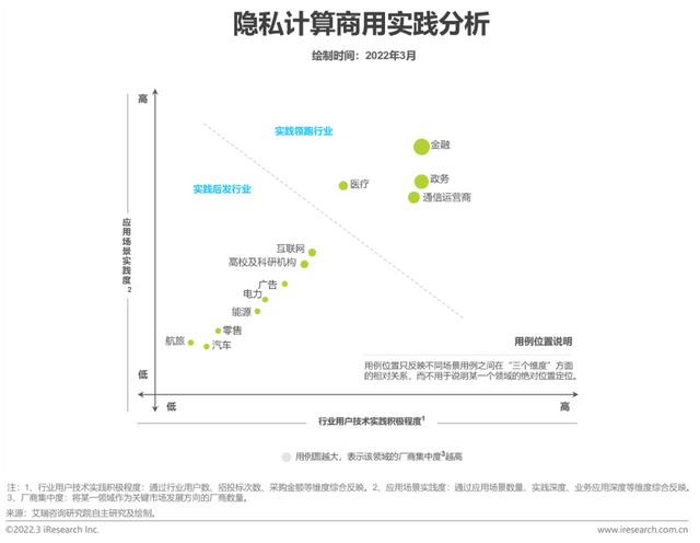 实践后发行业:能源、电力、航旅等领域虽然在现阶段不是隐私计算商用实践的主阵地。但是因为各领域间存在不同程度的数据流通需求,因此“实践领跑者”将在一定程度上带动“实践后发者”的隐私计算应用实践。