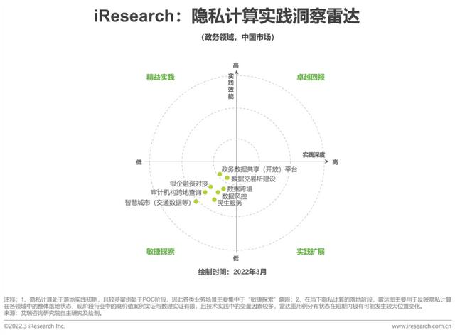 隐私计算场景实践的加深将会在不同程度上同频带动算力加速需求的增加。从“矩阵”的洞察结论也可以发现:在隐私计算跨平台互联互通推动下的场景应用实践的加深,以及差异化场景实践“百花齐放”时期的到来,算力加速需求都迎来了同频增长。结合“矩阵”研究过程中,对具备领先实践力的技术领导者调研,艾瑞研究团队与其最终的共识为:
