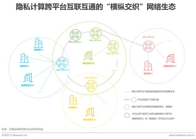在「前“隐私计算+”时代」的中期阶段:跨平台互联互通建设是深入展开应用层场景实践的基础,在企业应用层场景实践对多方数据调研需求的驱动下,将推动高效卓越“横纵交织”的互联互通网络的建成,这将为差异化应用场景实践的顺利开展提供基础保障,同时也为进入「中“隐私计算+”时代」打下基础。