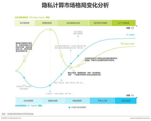 目前隐私计算的市场参与者类型众多,不同厂商的能力优势、发展策略也存在差异。在行业的早期阶段,市场营收和融资能力将同时影响公司的生存发展。但是随着技术由期望膨胀期走向泡沫破裂低谷期,资本热度将逐渐退去,没有“造血能力”的市场玩家将逐渐退出市场或者被收并购。在“核心基建期”,具备卓越产品力(技术优势)、市场力(市场开拓能力和资源优势)的厂商通常会获得更多的行业用户,这些厂商通过行业用户的积累将在“隐私计算+”时代占据一定的基础优势。而在“隐私计算+”时代,能够打造卓越数据智能产品、拥有差异化优质数据源、能提供精益敏捷服务的厂商将更具发展优势。