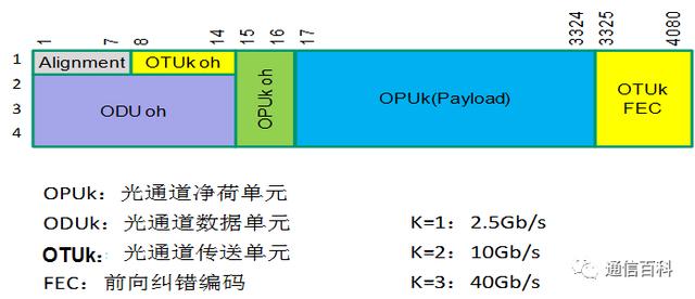 对于不同速率的G.709 OTUk 信号,即OTU1,OTU2,和OTU3具有相同的帧尺寸,即都是4×4080个字节,但每帧的周期是不同的。