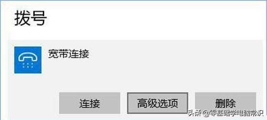 3.在右侧拨号下方 点击【宽带链接】,然后点击【高级选项】;