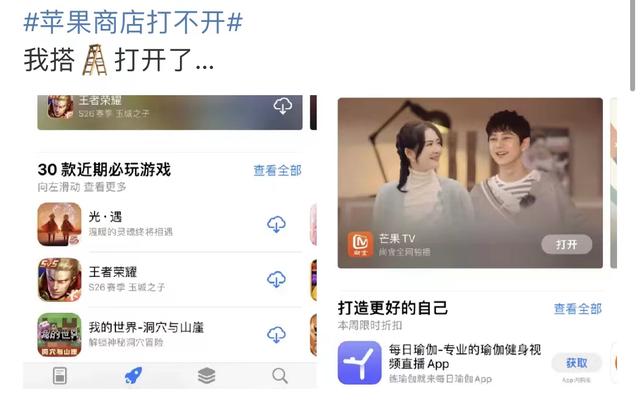 今天下午3时左右本来想下载个「反诈APP」,但是发现App Store连接不上了,我以为我的Wi-Fi有问题,用了5G还是打不开,我去网上找了找原因发现,有不少网友反应苹果商店无法打开了,到目前为止还是。一直连接不上服务器,苹果的天气也出现了系统故障。