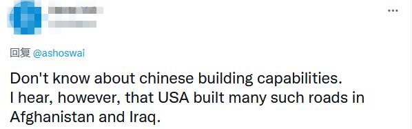 结果有人神吐槽:“不知道中国的建设能力,但是我听说美国在阿富汗和伊拉克修建了许多这样的道路。”