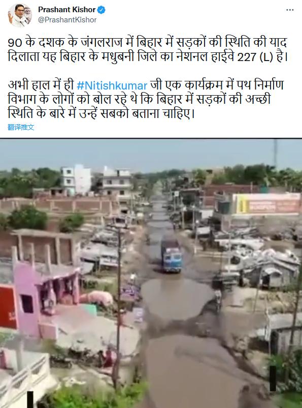 普拉桑特经常批评比哈尔邦首席部长尼蒂什·库马尔(Nitish Kumar),这回也不例外,他借着227国道的事对库马尔好一通嘲讽:“这是比哈尔邦227号国道,让人想起90年代丛林时期比哈尔邦的道路状况。而库玛尔最近还说要告诉大家比哈尔邦的公路网建设得很好。”