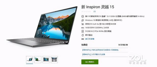 本次推荐机型配置为:英特尔酷睿i5-11300H处理器、16GB内存、512GB SSD以及英特尔锐炬Xe核显,其在戴尔官网的售价为5198.99元。