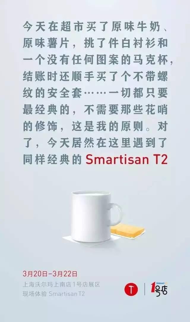 锤子T2上海沃尔玛1号店现场体验活动的文案,每一句文案都基于朴实温馨的生活场景,却又用得恰到好处。