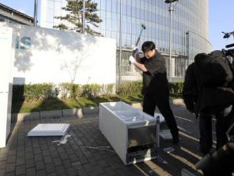 11月20日,老罗叫上几个朋友赶到西门子总部门口,用锤子把冰箱给砸了个稀巴烂!