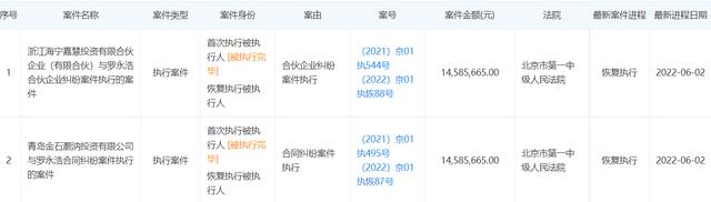 6月6日,司法信息显示,罗永浩近日新增两条被执行人信息:其中一条执行标的为14585665元,案由罗永浩与青岛金石灏汭投资有限公司的合同纠纷案;另一条执行标的14585665元,案由罗永浩与浙江海宁嘉慧投资有限合伙企业纠纷案。两条执行标的合计超2900万元,执行法院均为北京市第一中级人民法院。