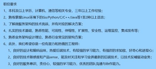 最为基本的,是要精通一门如Java、Python、Golang、C、C++等编程语言,同时兼会其他1-2门语言。学历最好是本科或以上。同时,具备持续学习能力,沟通协调能力以及高度责任心这些哪个职业都需要的核心软实力。