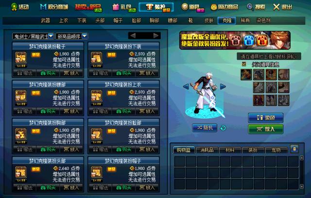 装扮商城中新增克隆项目,新增高级克隆装扮,可以更好的搭配3+3+2的装扮,其中上衣售价2970点券;头部售价2640点券;其他部位为1980点券一个。