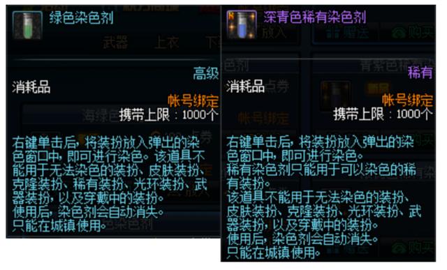 普通染色剂不能染色的是皮肤、克隆、稀有装扮、光环装扮,武器装扮;稀有染色剂只能用于稀有装扮染色,不能染色皮肤、克隆、光环装扮,武器装扮。
