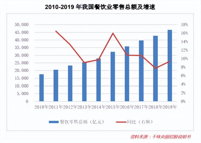 2012-2019年,我国餐饮收入从2.33万亿元增至4.67万亿元,年复合增速为10.44%,显著高于GDP增速。