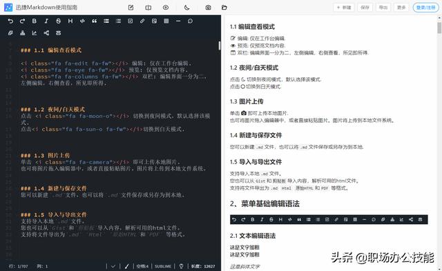 这是一个在线编辑工具,平时写文档、做表格、写论文、记笔记,用它就非常方便,不用额外安装软件,启用双栏编辑,实时预览效果。