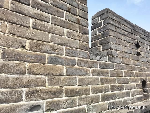 其实,我到长城的第一个直观感受,并不是,太雄伟了!太壮观了!而是!为什么城墙的砖上这么多的刻字!!密密麻麻,晃眼看去,几乎每块砖头上都有刻字!当时真的有种说不清的感受,觉得有点堵心,这些悠久古老的经受历史变迁的石砖,躲过了岁月的刻痕,却没躲过人类的刻痕。。。一声叹息。。。