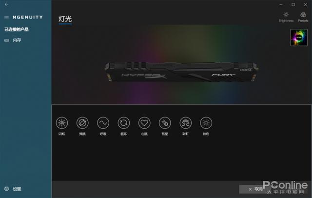 既然是出自HyperX之手,雷电流光系列骇客神条同样也兼容HyperX独家的NGenuity软件进行灯光的定制,更具个性化。目前,雷电流光系列骇客神条支持的最新版HyperX NGenuity软件,需要在Win10商店下载。