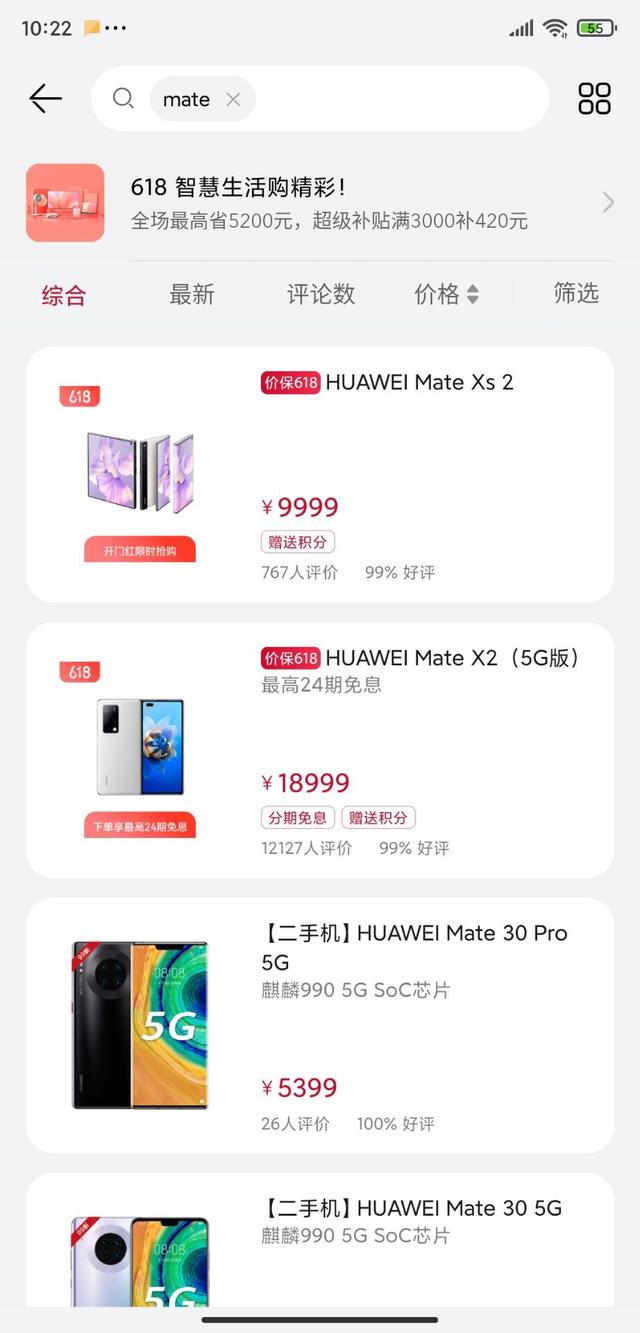 IT之家 6 月 3 日消息,据网友反馈,华为 Mate 40 / Pro 系列手机已经从华为商城下架,搜索 Mate 手机时发现,目前在售新机只剩下 Mate Xs 2、Mate X2 5G 折叠屏手机。其他包括华为 Mate 30 等二手机。