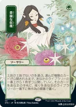 丰足收成(Abundant Harvest)这张牌是来自摩登新篇2的新牌,现在以秘典的形式出现。在摩登新篇2发售之前,这张牌摩登不可用。但在薪传特选指挥官赛制可用。也会加入MTGA。