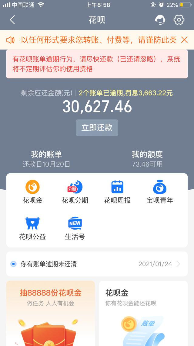 花呗也是逾期了,逾期的时间和借呗是一样的,都是271天,罚息高的吓人,这样罚下去,会是一个天文数字等着我