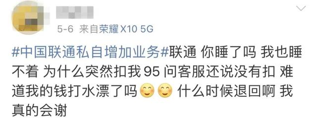 新浪微博上#中国联通私自增加业务#话题下网友评论。资料图片