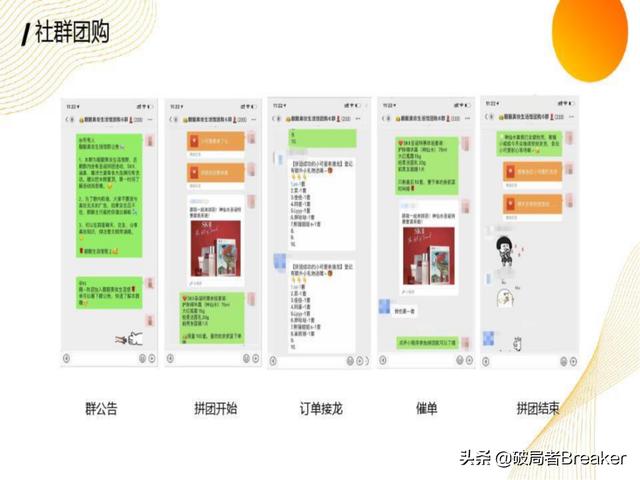 社群成交︰将粉丝聚集到微信群,在群里发起活动,激发粉丝的购买欲望,促使其下单。社群成交方式有团购、秒杀等。