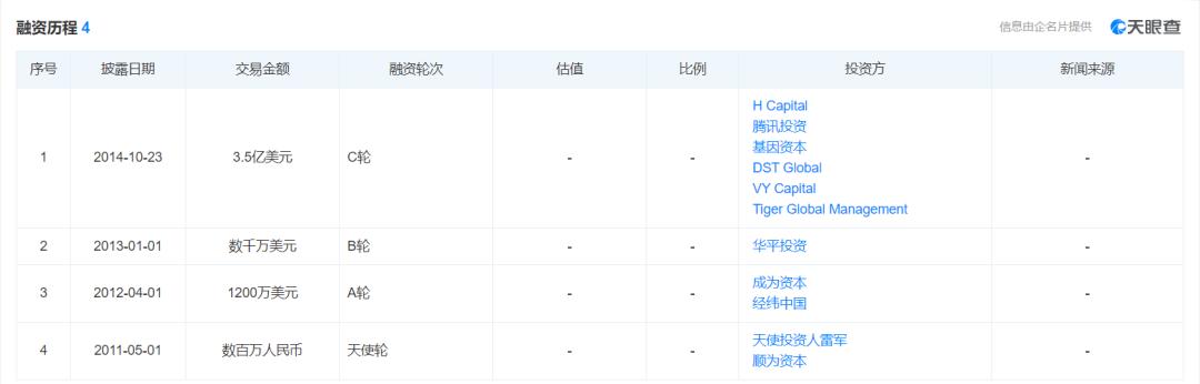 根据天眼查数据,2011年到2014年的四年间,北京口袋时尚科技有限公司进行了三轮融资,其中不乏雷军、腾讯等知名投资方。其中,2014年10月的C轮投资金额甚至达到了3.5亿美元。口袋购物微店创始人、CEO王珂曾透露,到2014年9月份,微店已覆盖172个国家,吸引了超过1200万家店铺入驻,月独立访客8300万,成交额达150亿。