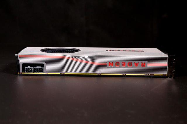 RX 5700 XT和以往的AMD公版卡在外观上最大的不同就是在显卡顶端做了一个凹陷设计,看上去感觉像是被摔过一样。AMD这样设计的目的主要还是为了增加显卡的视觉冲击力。