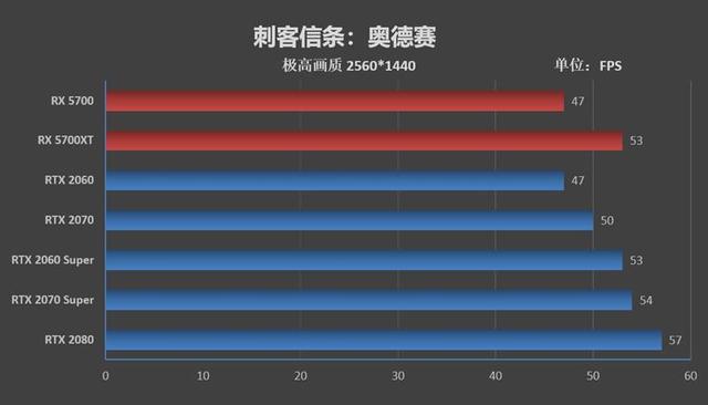 在《刺客信条:奥德赛》中,RX 5700的帧率为47FPS,成绩与RTX 2060相同。