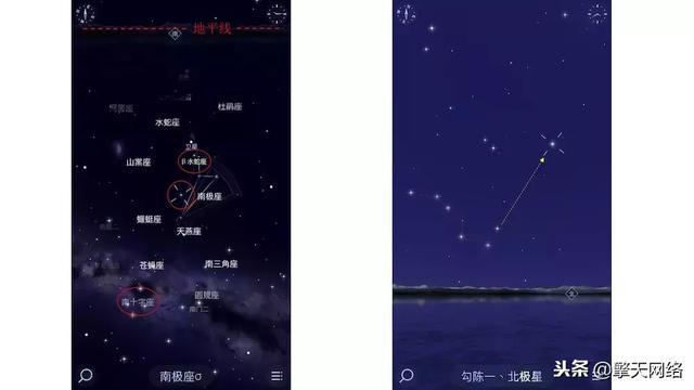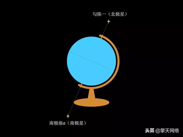 在北半球的角度看南极座σ即使抛开其自身亮度及光污染等因素我们也是看不到它的,北极星的位置就很好找了,顺着北斗七星勺子口外侧两颗星星连线向外延伸5倍的距离那颗比较亮的星星就是北极星。