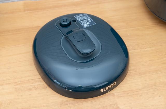 这个是压力盖,自锁定功能,中央位置那个小方块是排汽按钮,可以手动排汽释放压力,方便打开压力盖子,这个锅子支持开盖加热功能,非常不错哟。