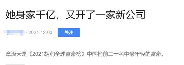 根据某财经媒体在2021年底的最新统计,章泽天目前的身家已经超过了千亿,在9家公司担任股东,4家公司担任高管。