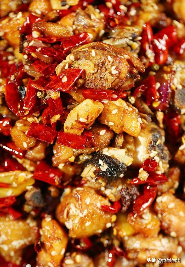 万没想到能在如此风雅的环境中见到这种儿时的干煸鸡。过油的肌肉蜷缩成一小团,一勺下去,一般鸡肉一半辣,辣的我猛灌水,可就是停不下来。辣味中有回甘,这才是徐州才的精髓,辣口不辣心。仔细的嘬干净每块鸡骨头,不一会就被哄抢而空了!