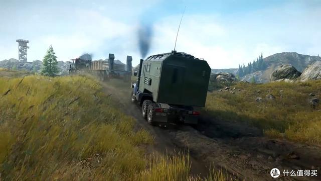 本作相对上一代在画面上有一定进步,至少掌机模式下帧数稳定了不少。虽然一如既往的糊,但在可接受范围内。这个系列的主要乐趣还是在各类风景优美,但道路泥泞十分难走的野外运输物资。挑选自己心爱的车型,驰骋在黎明或者黄昏之间,看着日出日落,透过 joy-con 感受发动机的轰鸣,这种乐趣大概也只有男人能懂。