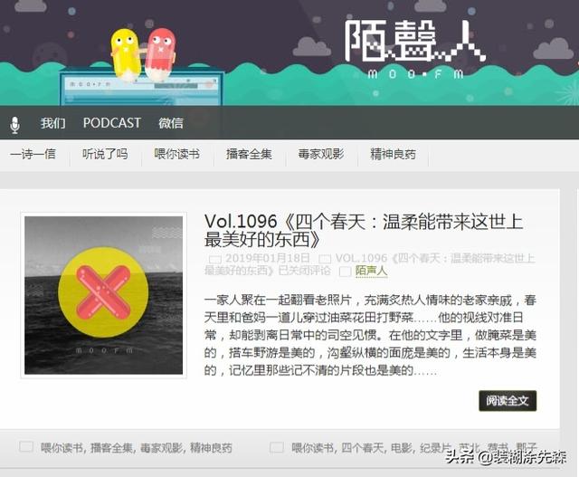 一说到电台,特别能让我联想起小时候的画面。把收音机放在窗前,「滋滋」换频道的声音,听着各种各样的故事,晒着太阳,肆意地消磨时光。这个只属于那个时代的画面,这个时代已经不复存在,00 后更不会知道什么是收音机。