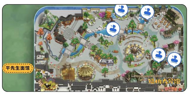 首先,这7个区域都是有餐厅的,而且大多数营业时间都是11:00-21:00,全天营业。所以,大家提前记住两个点: