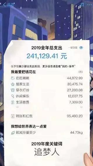 2020年开年第一个年度词汇出来了—账单式小康;意思是,明明穷到举步维艰,但一看支付宝账年度账单,感觉自己过去这一年过的还挺凑活。