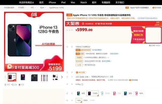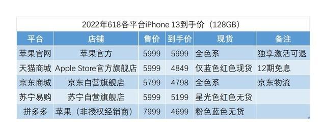 作为基准,苹果官网iPhone 13的128GB版本价格为5999元,各种配色均有现货,此外,官网独享激活可以退货,这在其他平台是没有的,如果想要激活试用,只有官网一个平台。