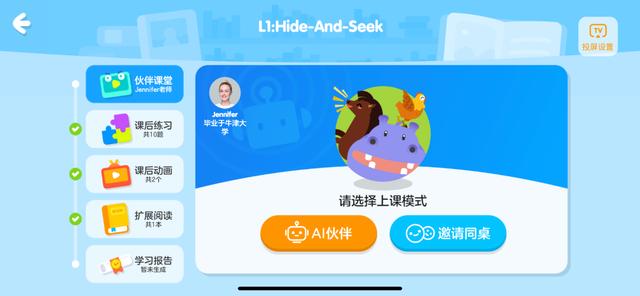它的英语课程是从自然拼读入门。每周四节课,周一会以游戏的互动形式来学习两个字母以及首字母单词,周二、周三以动画、故事、歌曲的形式学习并理解首字母单词,周四则为主题故事课。