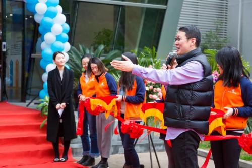 上海浦东软件园股份有限公司党委书记张素龙、上海浦东软件园股份有限公司副总经理杨建生、君联资本董事总经理靳文戟、高通创投董事总经理沈劲、伟高达创投季淳钧、爱乐奇创始人兼CEO潘鹏凯博士、爱乐奇执行副总裁与董事Andrew Shewbart及多名来自新东方、上海国和投资、华威国际集团、和通国际股份有限公司、UMC创投的代表们参加了开业典礼,并进行剪彩。
