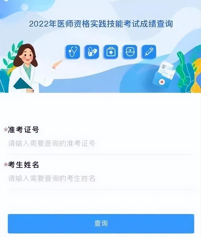 2022年医师资格实践技能考试成绩考生查询端口如图示