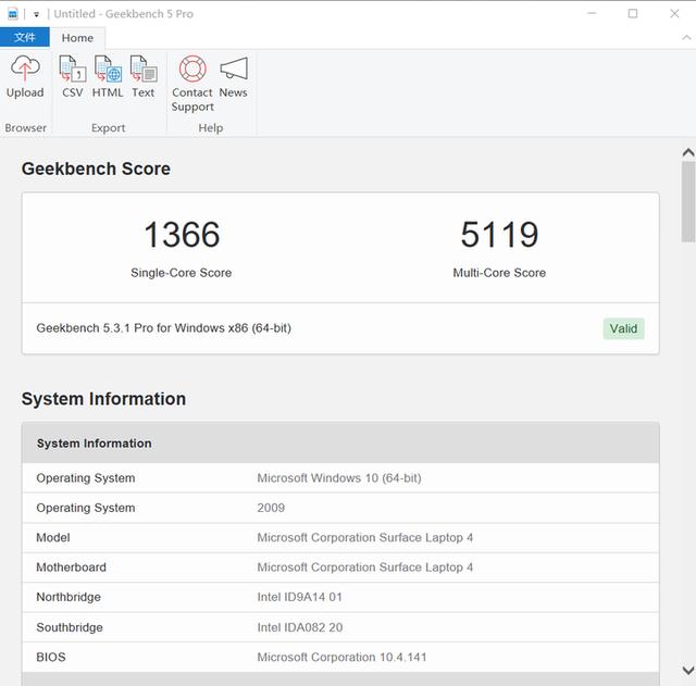 使用 GeekBench 5 对其进行测试,单核得分 1366,多核得分 5119,这也验证了 11 代 U 在单核性能上确实有着不小的提升。